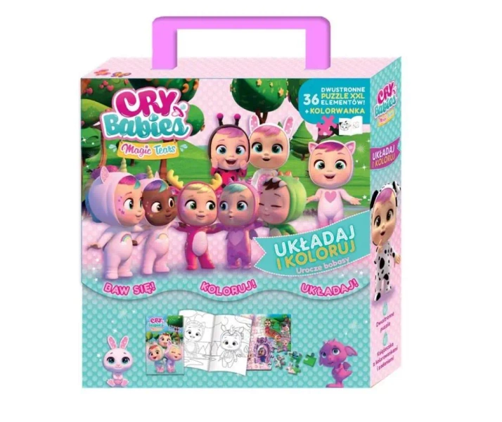 Odkryj nieskończoną zabawę z Cry Babies! Ta niezwykła oferta składa się z książki z różnorodnymi kolorowankami oraz dwustronnych puzzli. Stwórz kolorowy obrazek z charakterami popularnej kreskówki Cry Babies - po zakończeniu twórczego procesu, przekręć puzzle i stwórz kolejne dzieło - tym razem na podstawie swojego wyobrażenia.
