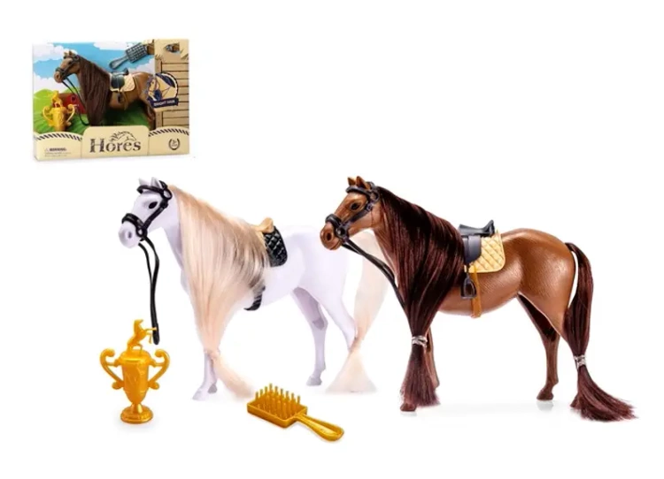 Ta zabawkowy konik to nie tylko główna atrakcja, ale także zestaw pełen dodatków! W skład zestawu wchodzi też siodło dla konika, a także szczotka do regularnego czesania grzywy i ogona. Dla małych miłośników konkurencji dodano także zwycięski puchar.Różne wersje kolorystyczne