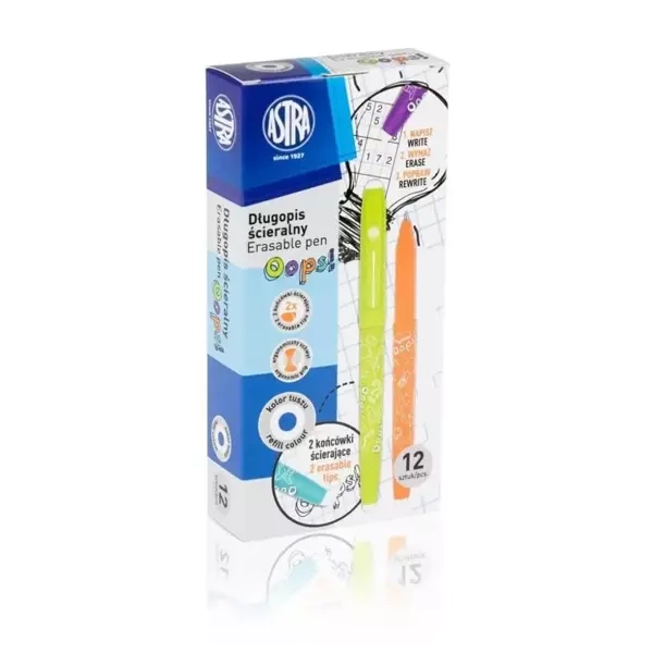 Długopis ścieralny Oops! niebieski box (12szt) - ASTRA papiernicze