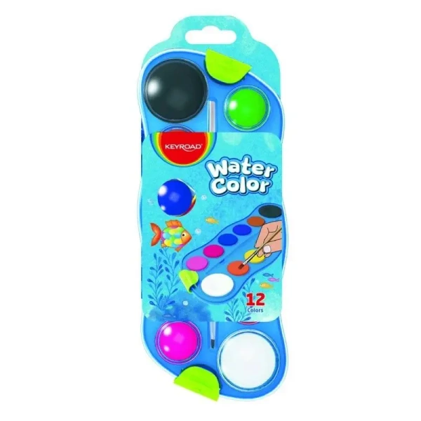 Farby akwalerowe z pędzelkiem 12 kolorów - Keyroad