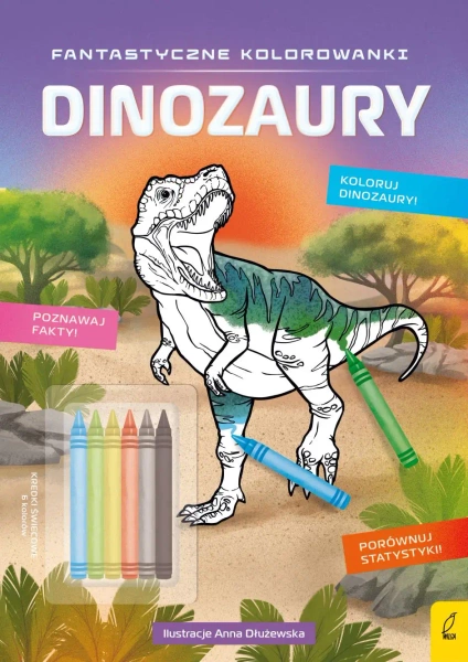 Fantastyczne kolorowanki to przepiękne ilustracje do kolorowania, dużo cennych informacji, ciekawostek i statystyk. Użyj kolorowych kredek i pokoloruj fantastyczny świat dinozaurów.