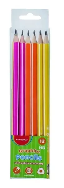 Ołówek HB z gumką trójkątny neonowy 12szt - Keyroad