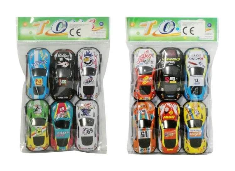 To komplet sześciu plastikowych samochodzików w różnych barwach. W skład zestawu wchodzą samochody sportowe z napędem typu friction, doskonale sprawdzające się podczas małych domowych wyścigów. Produkt oferowany jest w różnych wariantach kolorystycznych, które są wybierane losowo. Zaznaczamy, że cena dotyczy pojedynczego egzemplarza. Zabawka przeznaczona jest dla dzieci powyżej 3. roku życia. Zakupiony towar jest pakowany w przezroczystą torebkę.