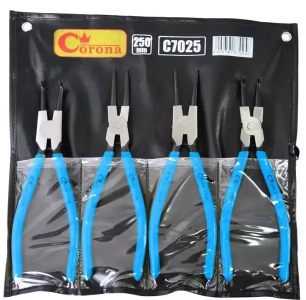 Szczypce Segera - 4 szt. - Corona C7025 Zestaw szczypiec Segerea C7025 obejmuje: szczypce zewnętrzne proste - rozmiar 250 mm szczypce zewnętrzne wygięte - rozmiar 250 mm szczypce wewnętrzne proste - rozmiar 250 mm szczypce wewnętrzne wygięte - rozmiar 250 mm Warto wiedzieć: szczypce dostarczane w saszetce z tworzywa specjalna konstrukcja szczęk szczypiec Segera C7025: