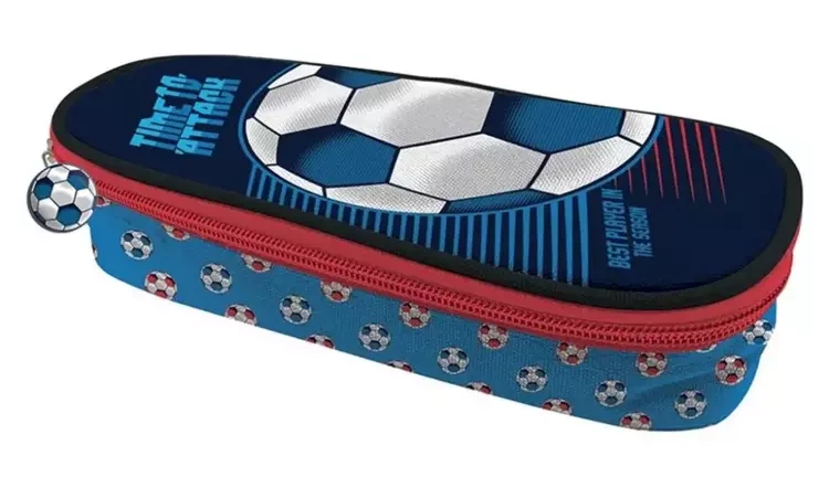 Na jednym ze skrzydeł klapki umieszczono kieszonkę z siateczki na drobne akcesoria, zabezpieczoną wygodnym zamkiem błyskawicznym. Dodatkowe gumowe uchwyty stanowią o funkcjonalności produktu. Na zewnętrznej stronie piórnika umieszczono ciekawy motyw graficzny, idealny dla chłopców.