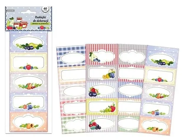 W ofercie mamy unikalny zestaw składający się z 40 prostokątnych naklejek, które idealnie nadadzą się do ozdobienia słoików na przetwory. Na każdej etykiecie znajduje się miejsce, w którym można wpisać nazwę konkretnego przetworu.