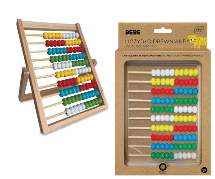 Ten drewniany, dziesięciorzędowy abakus z efektowną, rozkładaną podstawą i barwnymi kulami jest doskonałym narzędziem do nauki podstaw matematyki dla maluchów. Poznaj od podstaw naukę liczby i działania matematyczne razem ze sympatycznymi zwierzątkami z serii BEBE!