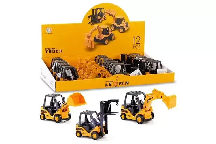 Zamówienie tego produktu oznacza, że otrzymasz losowo jeden z trzech dostępnych modeli: podnośnik, koparka, lub ładowarka. Każdy z nich wyposażony jest w funkcję napędu frykcyjnego oraz poruszające się elementy. Ten pojazd budowlany przeznaczony jest dla dzieci w wieku 3 lat i więcej.