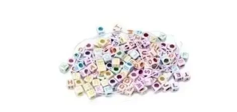 Koraliki literki kolorowe biała kostka 20g+sznurek - Brewis