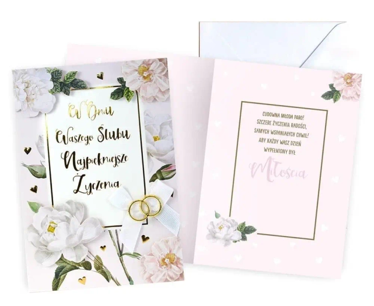 Wspaniały Prezent na ŚlubTa kartka to idealny sposób, aby przekazać nowożeńcom szczególne życzenia. Niezależnie od tego, czy szukasz kartki dla bliskiej Ci pary, czy potrzebujesz estetycznej kartki na ślub dla kolegów z pracy, ta opcja zapewni estetyczną oprawę Twoich życzeń.