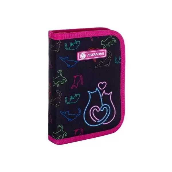 Jednokomorowy piórnik posiadający dwie klapki. Produkt marki Astra nie zawiera żadnych dodatkowych akcesoriów jak długopisy czy ołówki - dostarczany jest pusty (bez wyposażenia). Model, do którego należy piórnik, to LO&VE, C1.
