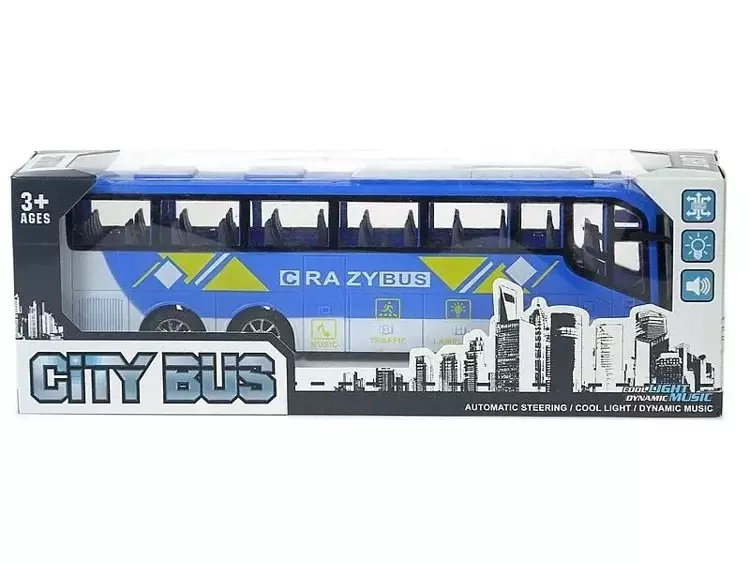 Autobus w skali 1:24 zasilany baterią, wyposażony w światło i muzykę