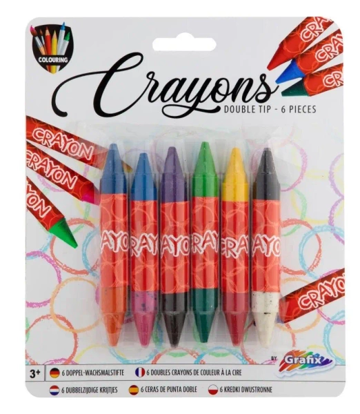 W ofercie dostępny jest zestaw kredek dwukolorowych, składający się z 6 przedmiotów. Każda z kredek posiada dwa różne kolory, przez co w sumie zestaw oferuje aż 12 różnych barw.