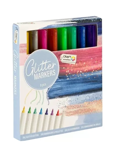 Zestaw markerów z brokatem składa się z 8 różnych, jaskrawych kolorów. Ich wyjątkowe właściwości pozwolą Ci dodać blasku każdemu rysunkowi czy dekoracji. Z pewnością przypadną do gustu każdemu miłośnikowi sztuki czy rękodzieła, niezależnie od wieku.