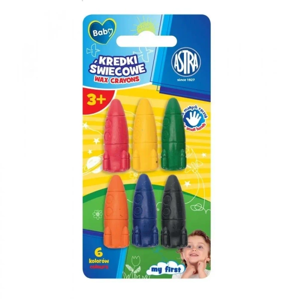 Kredki świecowe w kształcie rakiety 6kol ASTRA - ASTRA papiernicze