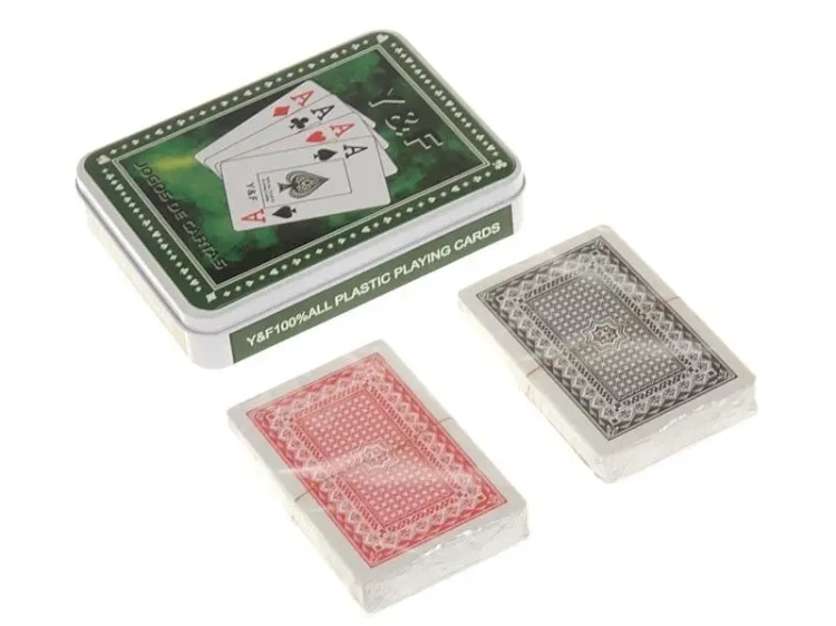 Zestaw kart do gier zawierający dwie talie w eleganckim metalowym pudełku