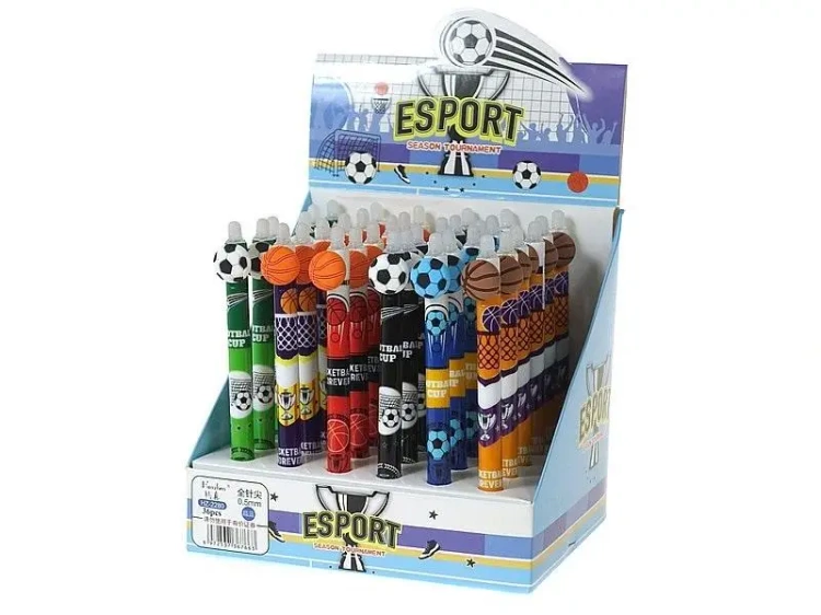 Zestaw containery 36 stylowych długopisów żelowych, które są zaprojektowane na kształt piłki. Idealne dla wielbicieli sportu!
