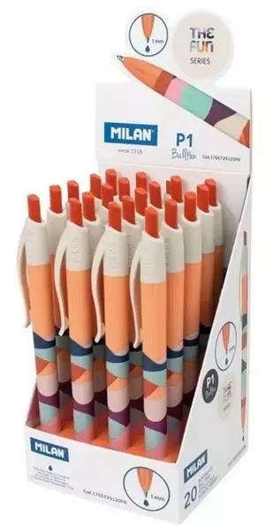 Prezentujemy komplet składający się z 20 niebieskich długopisów P1 The Fun produkowanych przez MILAN.