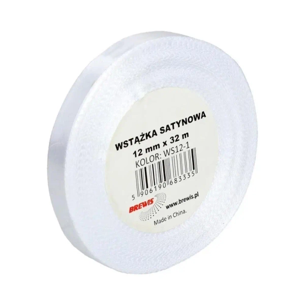 Biała satynowa wstążka o wymiarach 12mmx32m