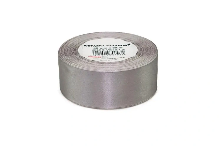 Srebrna wstążka satynowa o wymiarach 38mmx32m