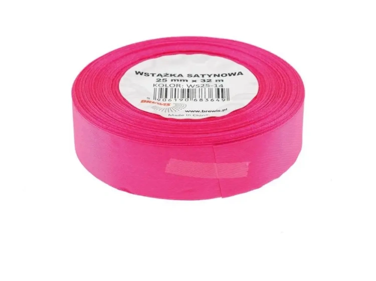 Wstążka satynowa różowa 25mmx32m - Brewis