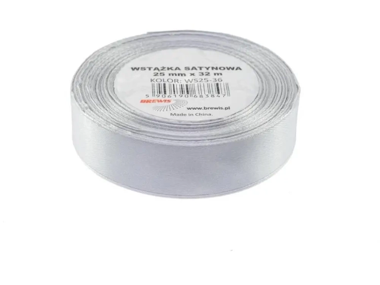 Szara wstążka satynowa o wymiarach 25mmx32m