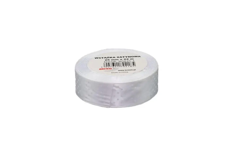 Wstążka satynowa w kropki biała 25mmx22m - Brewis