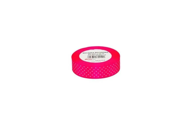 Wstążka satynowa w kropki rozmiar: 25 mm x 22 m kolor: różowy