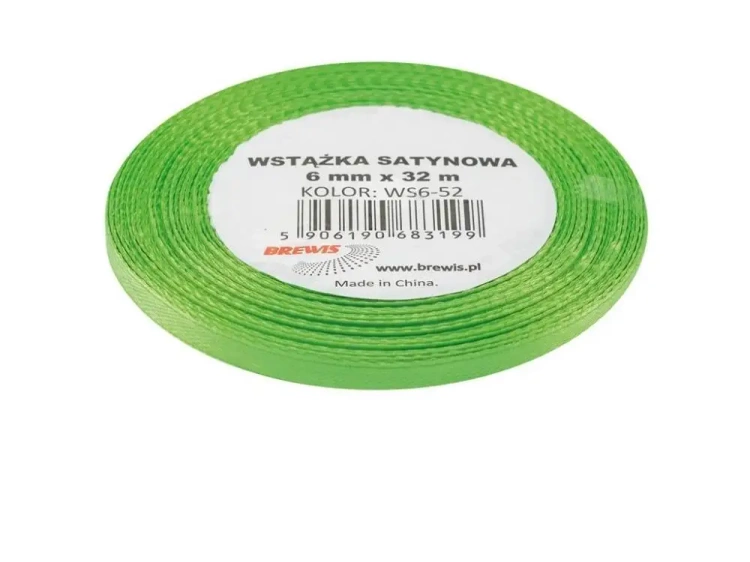 Wstążka satynowa zielona 6mmx32m - Brewis