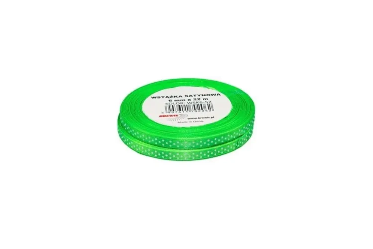 Wstążka satynowa w kropki rozmiar: 6 mm x 22 m kolor: zielony