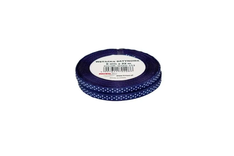 Wstążka satynowa w kropki granatowa 6mmx22m 2szt - Brewis