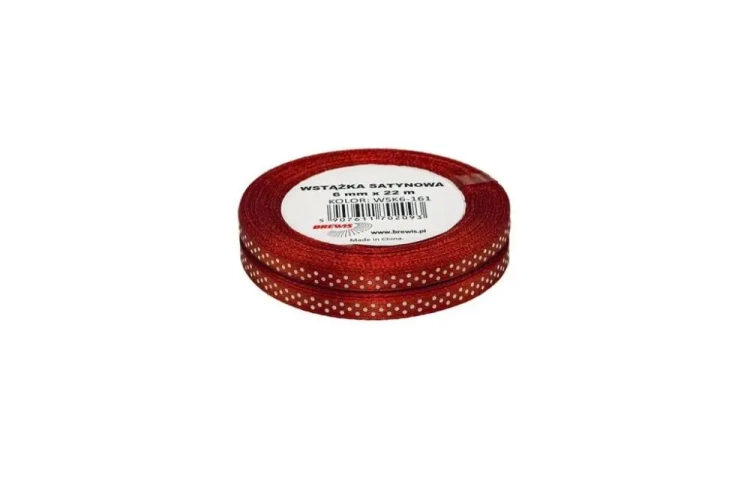 Wstążka satynowa w kropki czerwona 6mmx22m 2szt - Brewis