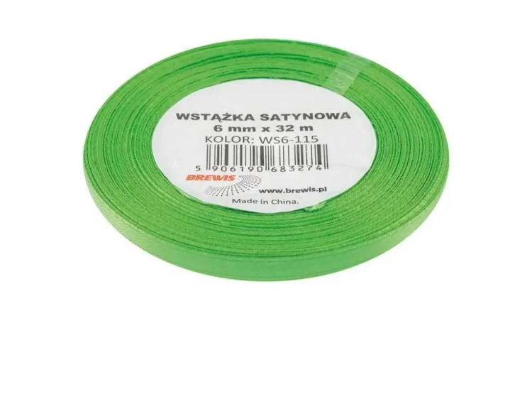 Wstążka satynowa zielona 6mmx32m - Brewis