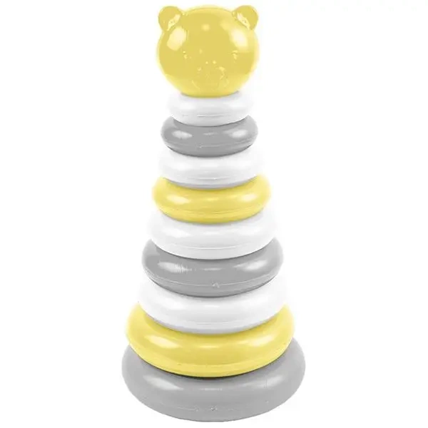 Odkryj geniusz ukryty w prostej formie zabawki. Misiowa Piramidka to zabawka, która zasługuje na miano podstawowej w edukacji małych dzieci. Ta urocza zabawka w kolorach żółtego, białego i szarego, pomaga dziecku rozwijać wiele kluczowych umiejętności. Składa się z podstawy ze słupkiem, a do dziecka należy zadanie nałożenia na niego kółek. Te, w różnych rozmiarach, trzeba układać od największego do najmniejszego. Na koniec, jako ostatni element, nakłada się główkę misia, która jest zwieńczeniem całej konstrukcji.