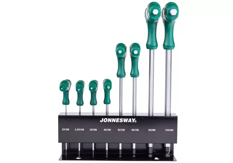 Prezentujemy zestaw kluczy wpustowych o sześciu kątach, wraz z kulką i uchwytem, wyprodukowane przez renomowaną firmę Jonnesway. Zestaw składa się z 8 kluczy wpustowych sześciokątnych, które szczególnie wyróżniają się swoją specjalną konstrukcją z kulką. Zostały one starannie wyprodukowane ze stali chromowo-wanadowej, co nadaje im matowego wykończenia. Wszystkie klucze zapakowane są w praktyczny uchwyt wykonany z trwałego tworzywa sztucznego.Więcej niż tylko klucze wpustowe - ten zestaw dostarcza 8 różnych rozmiarów kluczy wpustowych, co zapewnia niezbędną wszechstronność dla każdego specjalisty i amatora. Znajdziesz w nim klucze o średnicach: 2 x 100 mm; 2,5 x 100 mm; 3 x 100 mm; 4 x 100 mm; 5 x 150 mm; 6 x 150 mm; 8 x 250 mm; 10 x 200 mm.