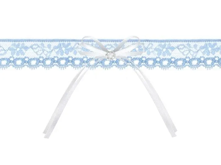 Podwiązka koronkowa z kokardką błękitna - PartyDeco