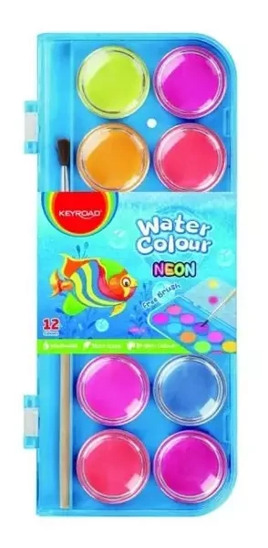 Farby akwalerowe neon z pędzelkiem 12 kolorów - Keyroad