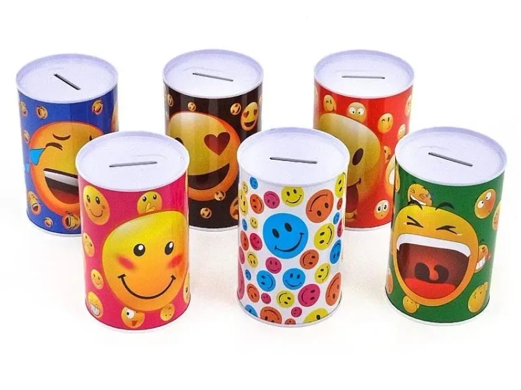 Metalowa skarbonka z buźkami o wymiarach 13x8cm MIX