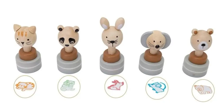 Drewniane stempelki z tuszem - Zwierzęta Askato