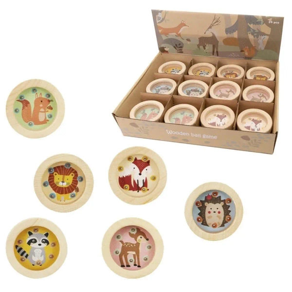 Drewniana gra zręcznościowa, która pomoże rozwijać dziecięcą koncentrację i nauczy je cierpliwości. W zestawie znajduje się 6 wzorów zwierząt leśnych - wiewiórka, lisek, lew, jeż, szop i sarenka. Zadaniem graczy jest manipulowanie kulkami tak, aby zająć wszystkie wolne miejsca wokół poszczególnych zwierzątek. Taka forma zabawy stymuluje koordynację wzrokowo-ruchową, rozwija zdolności logicznego myślenia i koncentracji.