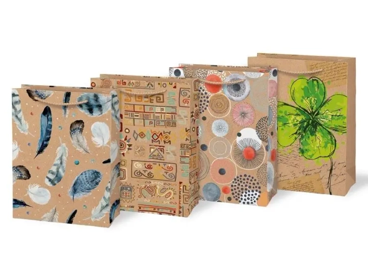 Torebka na prezent jest wykonana z papieru kraftowego – wytrzymałego i ekologicznego materiału. Wyposażona jest w mocny uchwyt, który ułatwia przenoszenie.