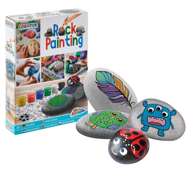 Zestaw do malowania na kamieniach: 3 sztuki + 6 różnokolorowych farb + pędzel.