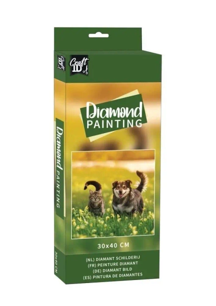 Obraz diamentowy - "Kot i pies", o wymiarach 30x40cm