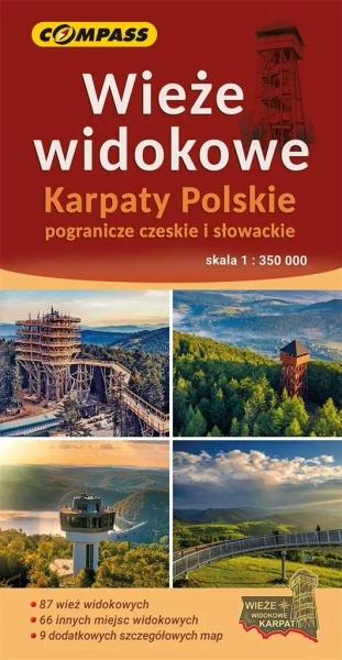 Wieże widokowe - Karpaty Polskie, pogranicze czeskie i słowackie to mapa przedstawiająca ponad 150 widokowych wież i platform. Ich lokalizacje zaprezentowano na mapie głównej w skali 1:350 000, a wybrane obiekty dodatkowo na mapach szczegółowych w skali 1:50 000. Wśród obiektów znalazły się również ścieżki w koronach drzew, konstrukcje mniej znane, a nawet jeszcze niegotowe lub planowane. Mapa główna zawiera aktualną sieć drogową, pasma górskie, a także sieć pieszych szlaków turystycznych co z pewnością ułatwi planowanie dojazdu i dojście do wybranych wież. Z opisu na rewersie mapy dowiesz się m.in.: - Skąd najłatwiej dojść do wież widokowych, którędy i w jakim czasie? - Jakie pasma górskie zobaczysz z tarasów widokowych wież? - Czy wejście na wieżę jest płatne? - Kiedy powstały i jaka jest wysokość konstrukcji? - Co ciekawego można zobaczyć w pobliżu wież? Mapa szczególnie polecana wszystkim miłośnikom piękna górskiego krajobrazu, przydatna każdemu zdobywcy turystycznych odznak Klubu Łowcy Widoków.