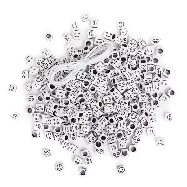 Jeżeli jesteś kreatywną osobą, te kwadratowe, białe koraliki z czarnymi emotikonami to produkt dla Ciebie. Oferują nie tylko humor, ale też oryginalność dla tworzonych przez Ciebie przedmiotów. Czy chcesz dodać unikalnego charakteru bransoletkom, brelokom, wyjątkowym zakładkom do książek czy kartkom okolicznościowym? Te koraliki z przeróżnymi buźkami na pewno Ci w tym pomogą. To doskonały sposób na spersonalizowanie Twoich projektów i dodanie im odrobiny zabawy. Koraliki są wyposażone w otwór, co ułatwia ich montaż.