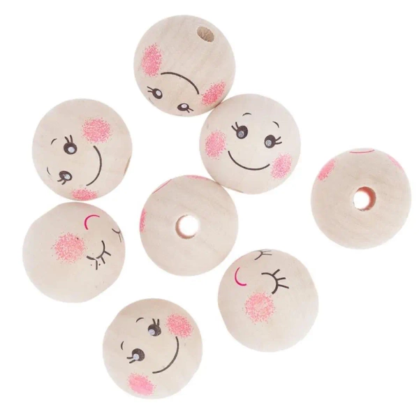 Koraliki drewniane kulki buźki 3cm 8szt - Dalprint