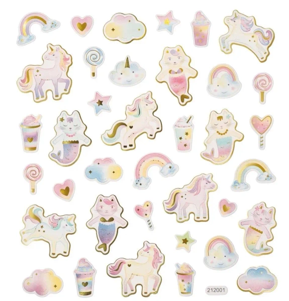 Naklejki z motywem jednorożców, tęczami i kocimi syrenami