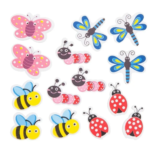 Naklejki z pianki z nadrukiem, przyciągające wzrok różnorodnymi motywami owadów, dostępne są w kilku wyjątkowych wzorach.