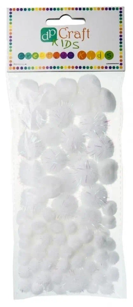 Pompony akryl/opal białe 85szt mix - Dalprint dpCraft