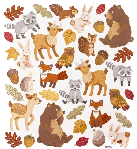 Naklejki brokatowe leśne zwierzaki 38szt - Dalprint dpCraft